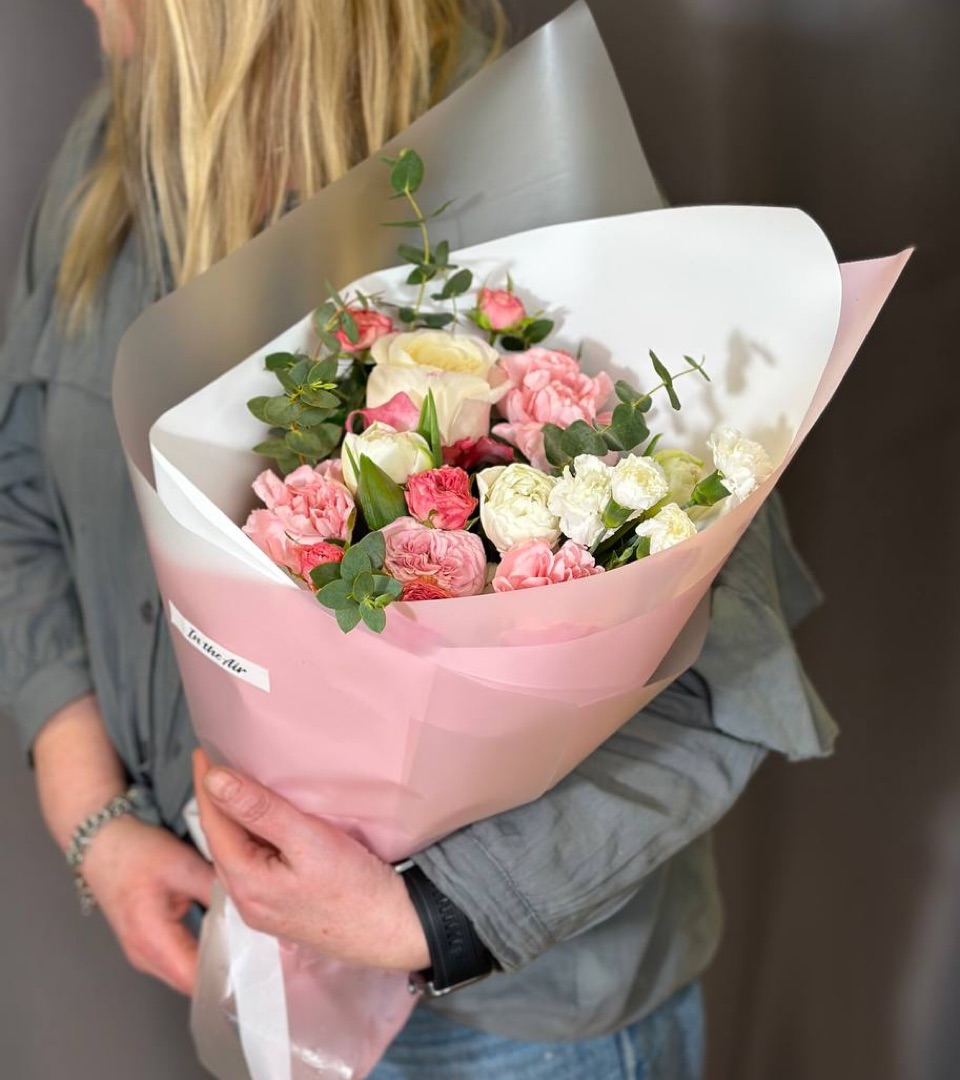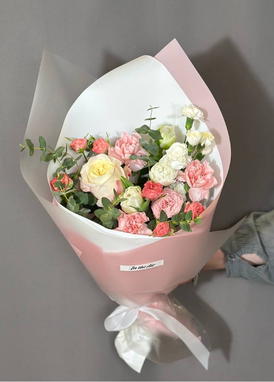 Свежесобранный букет в единственном экземпляре Собираем, фотографируем и сразу выкладываем на сайт. Можно заказать на сегодня завтра или послезавтра. Приедет тот самый букет с фото
