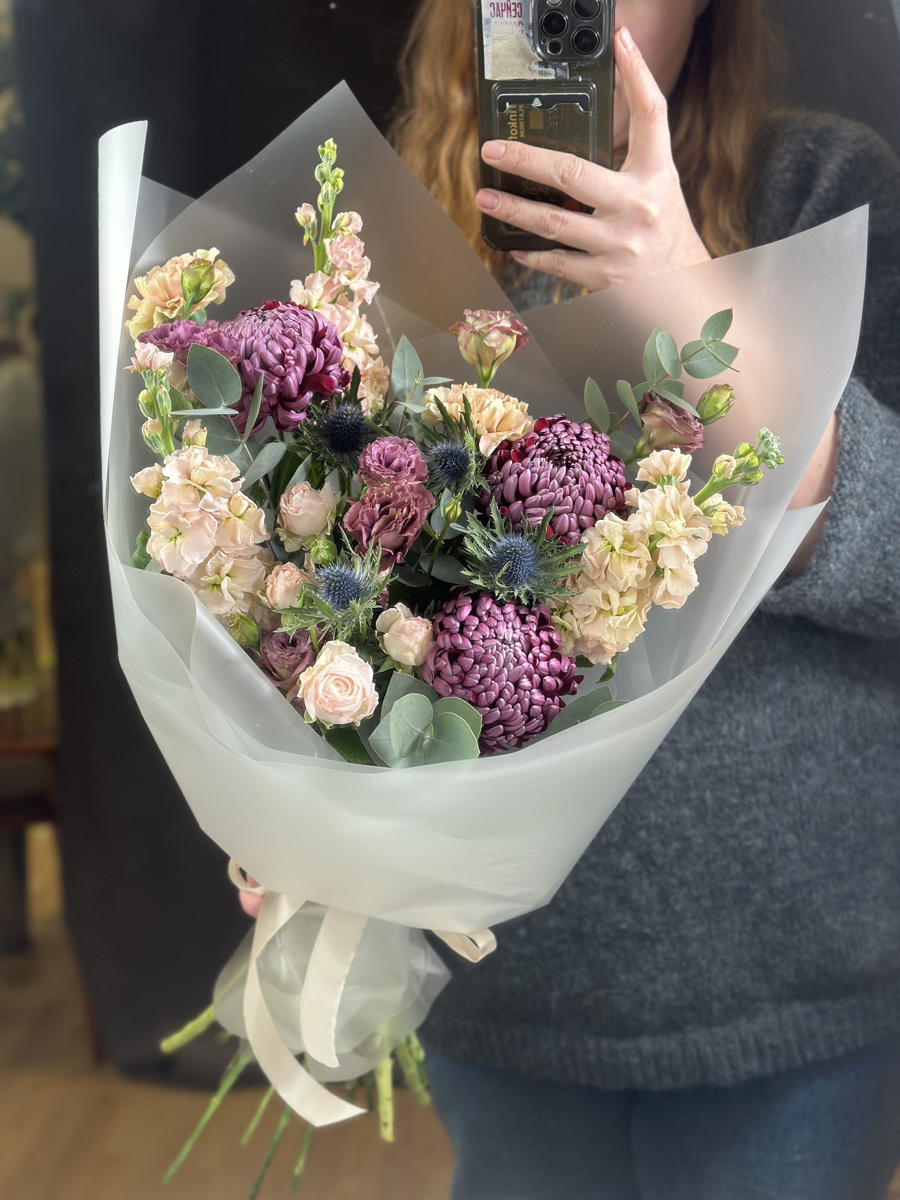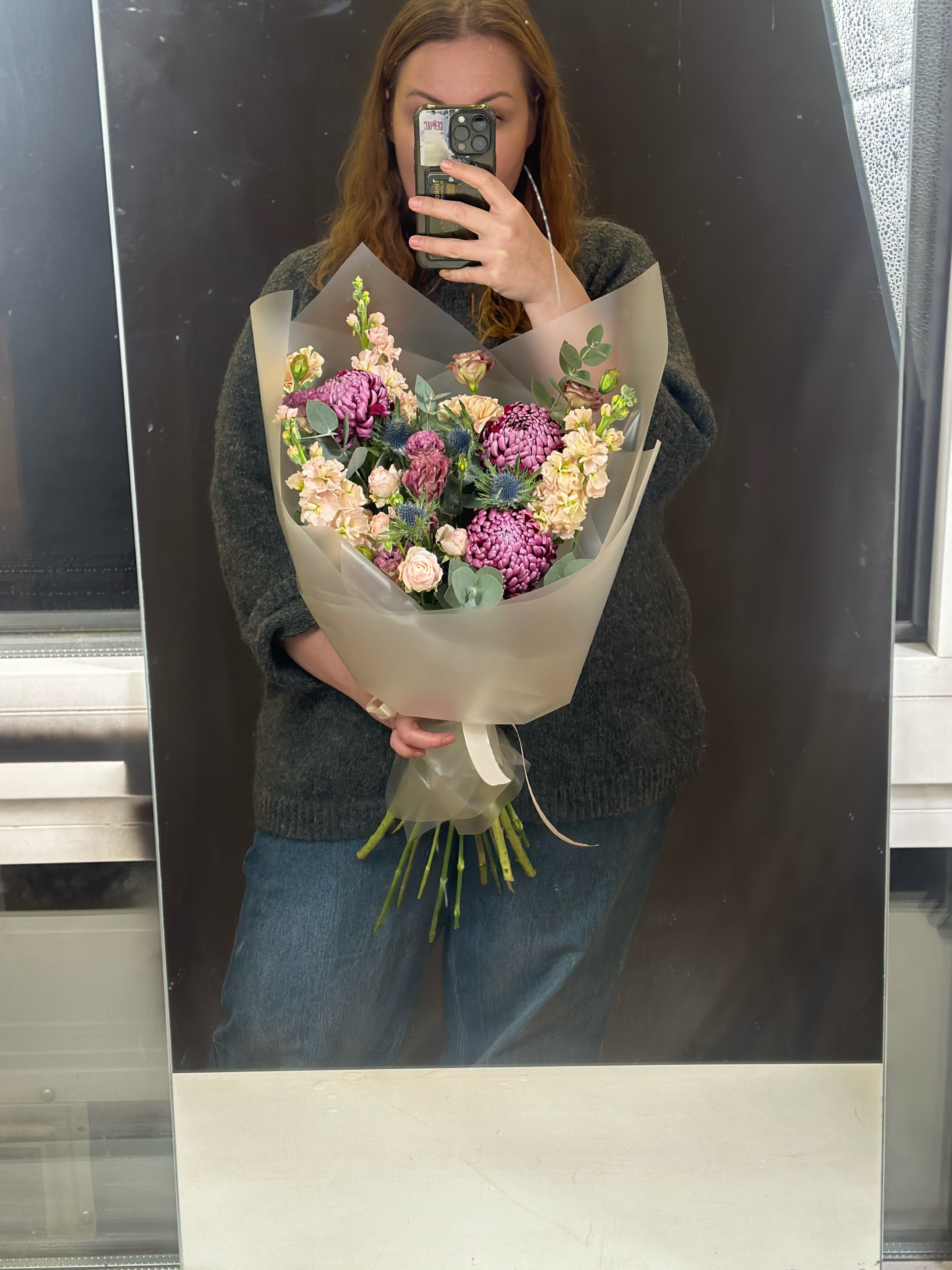 Свежесобранный букет в единственном экземпляре Собираем, фотографируем и сразу выкладываем на сайт. Можно заказать на сегодня завтра или послезавтра. Приедет тот самый букет с фото