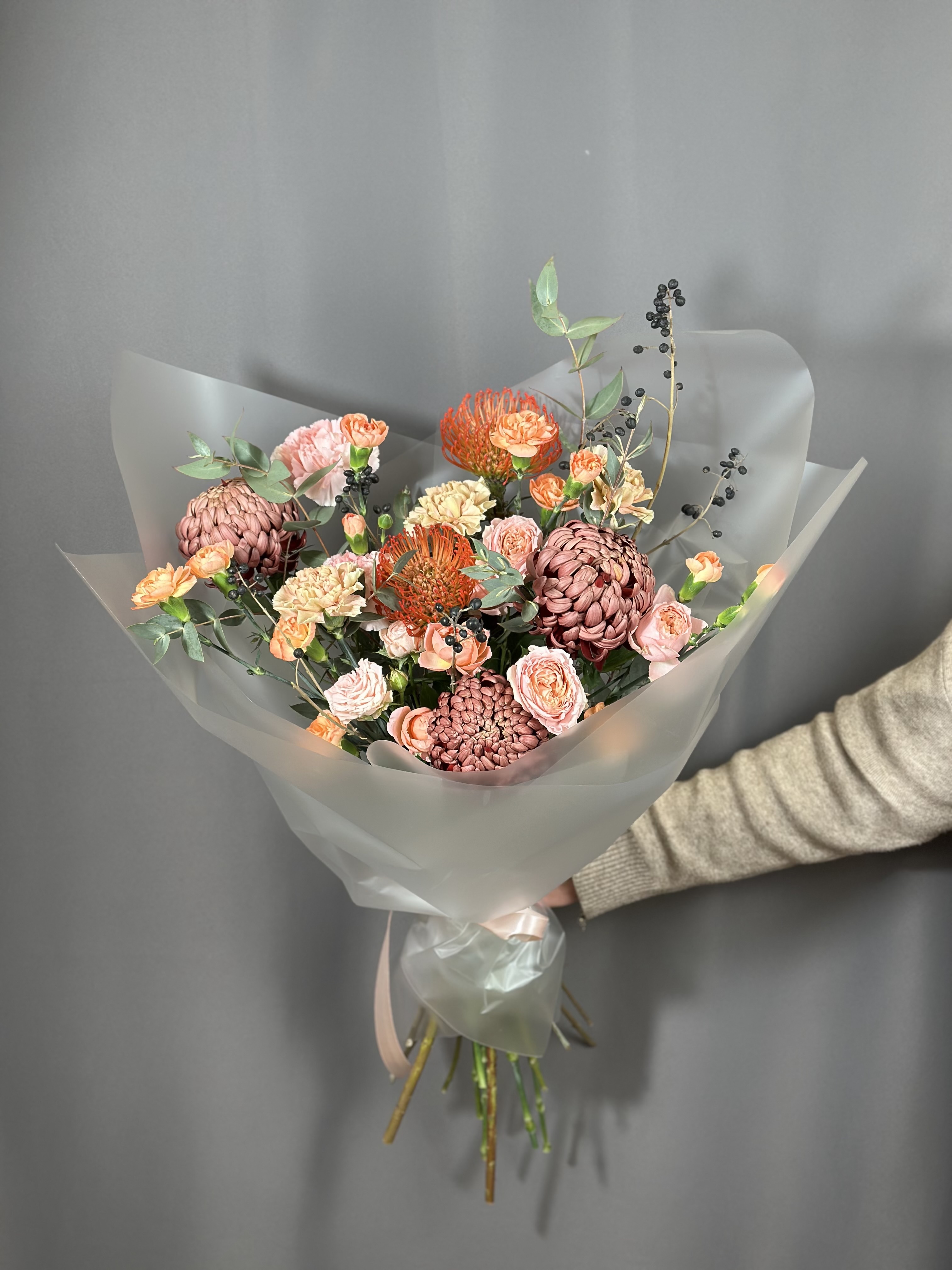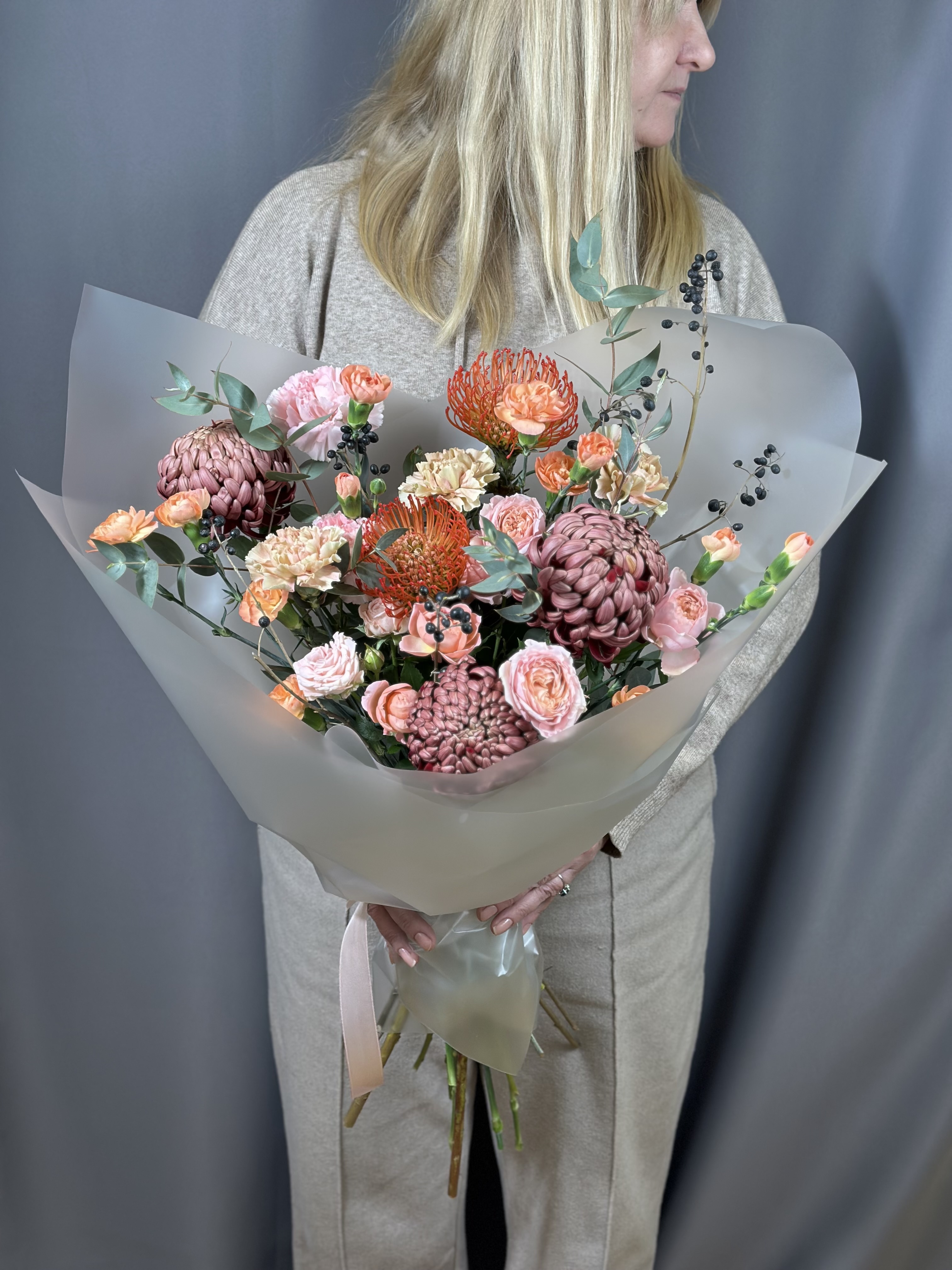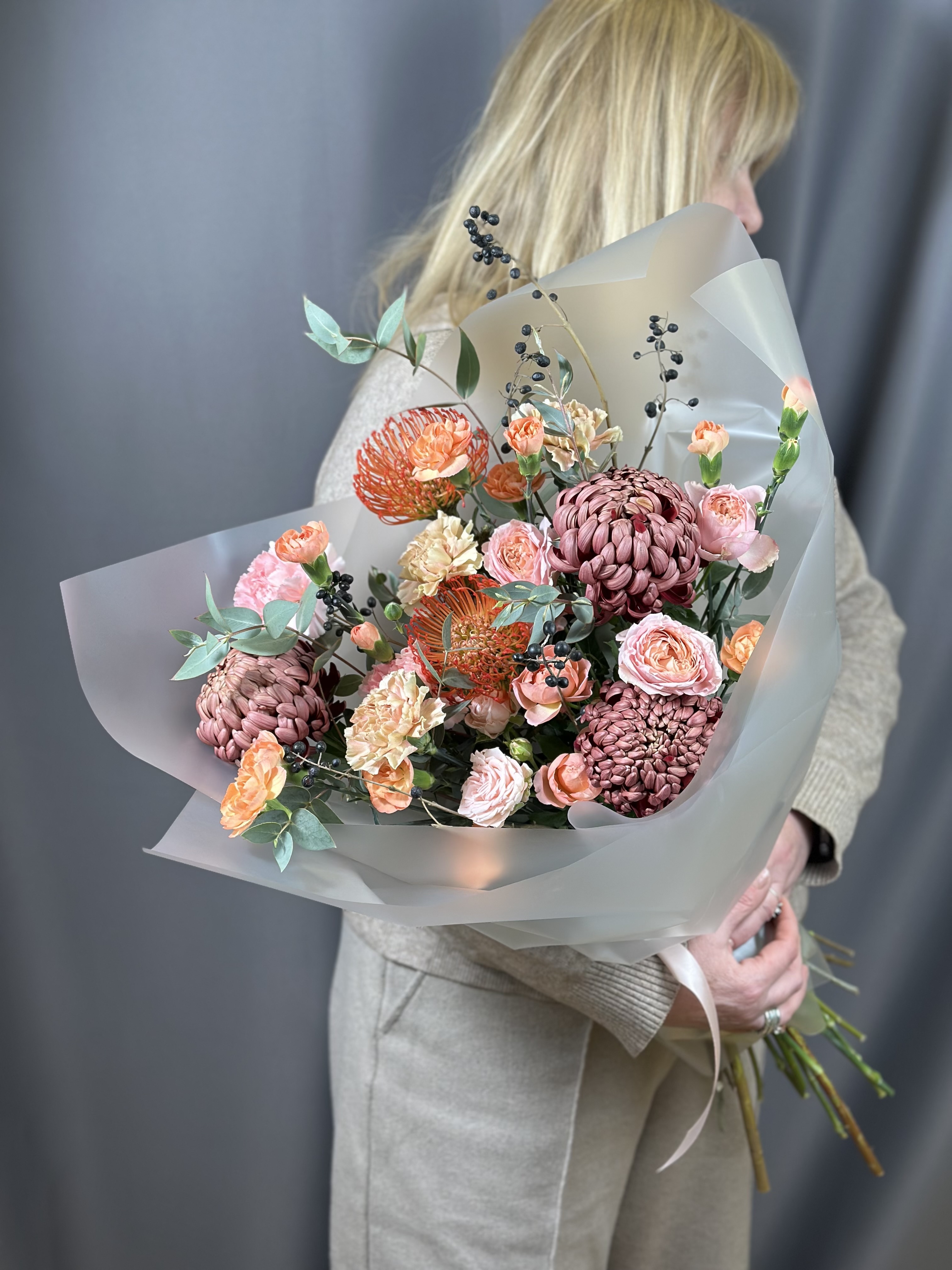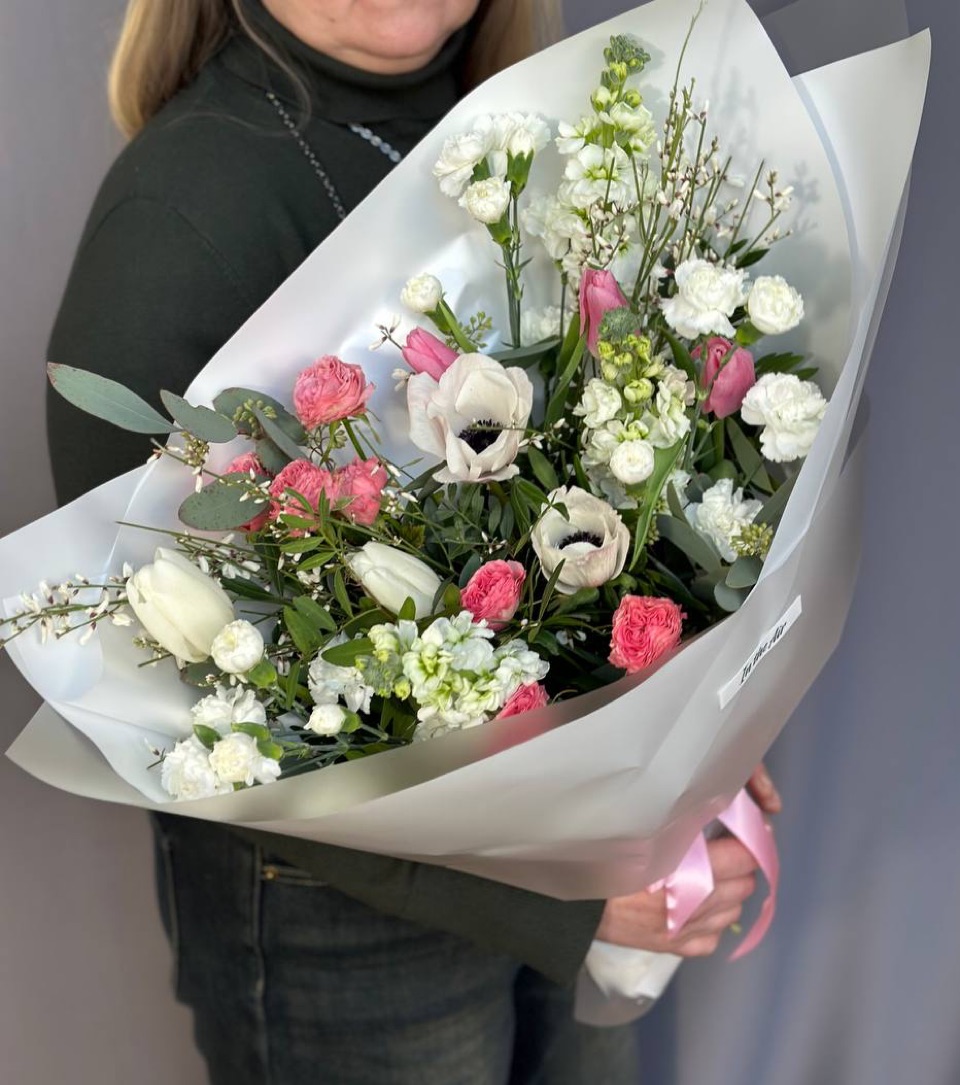 Свежесобранный букет в единственном экземпляре Собираем, фотографируем и сразу выкладываем на сайт. Можно заказать на сегодня завтра или послезавтра. Приедет тот самый букет с фото