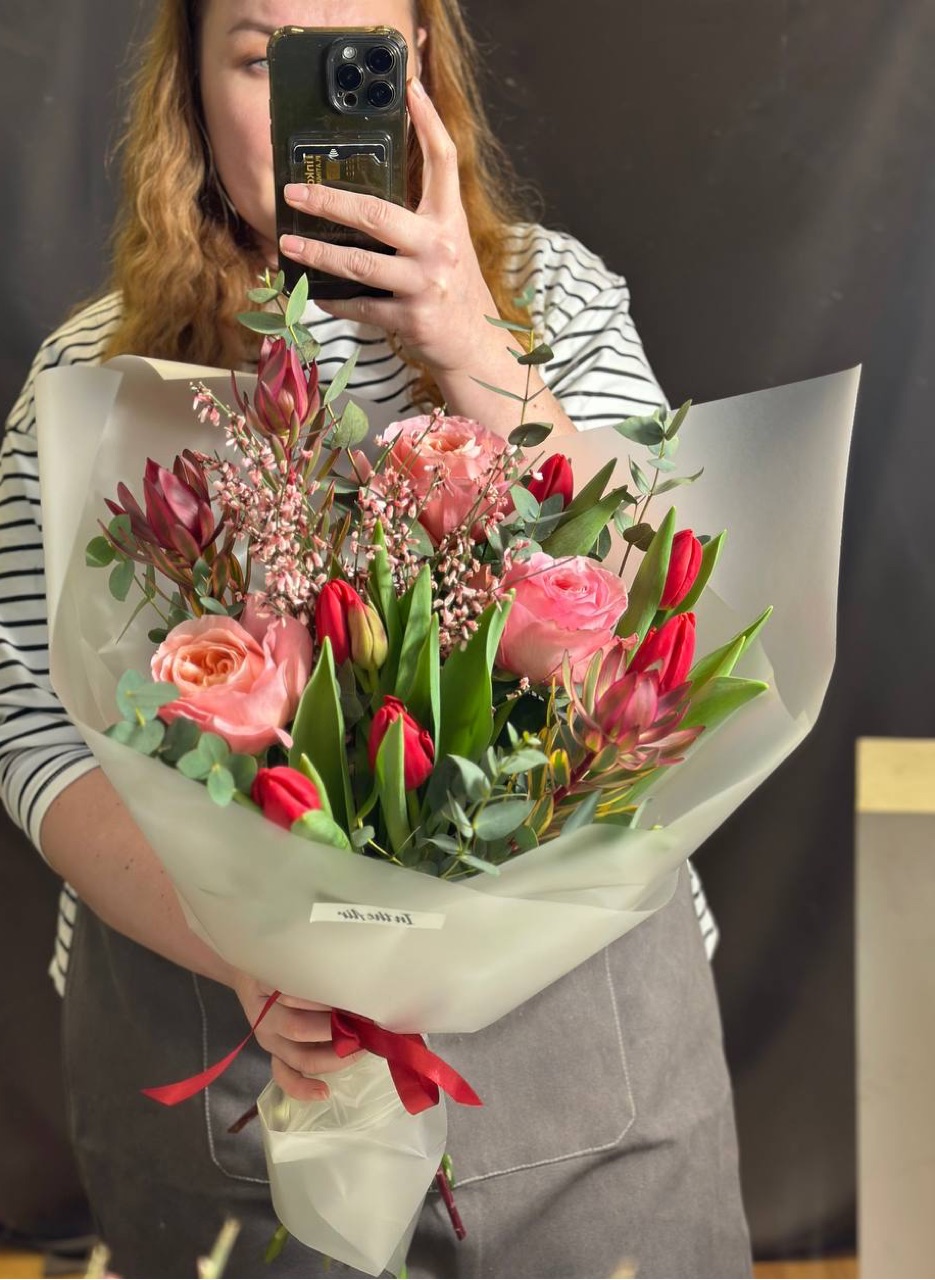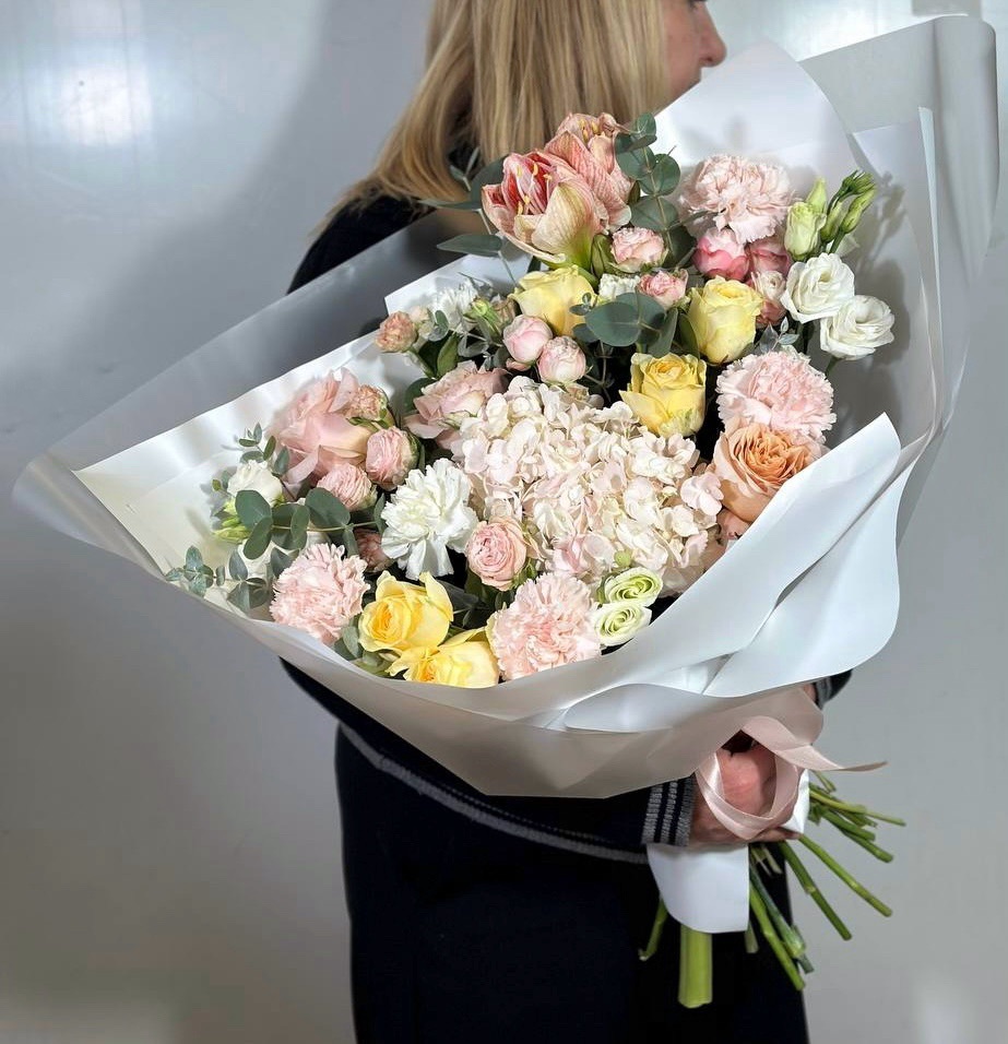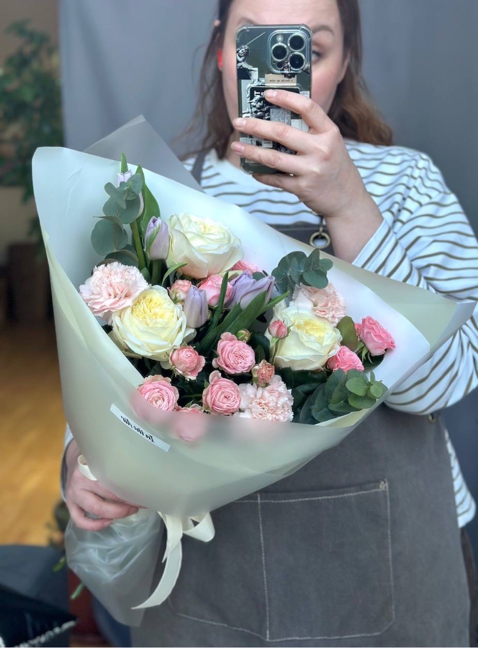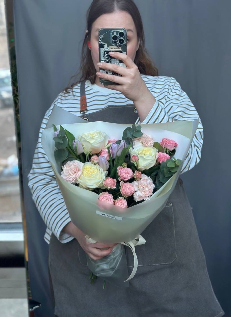 Свежесобранный букет в единственном экземпляре Собираем, фотографируем и сразу выкладываем на сайт. Можно заказать на сегодня завтра или послезавтра. Приедет тот самый букет с фото