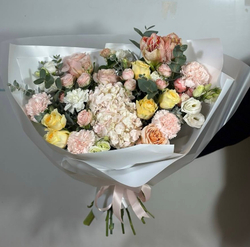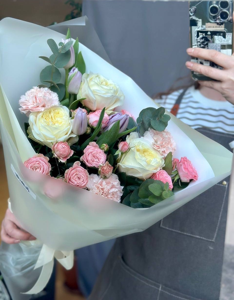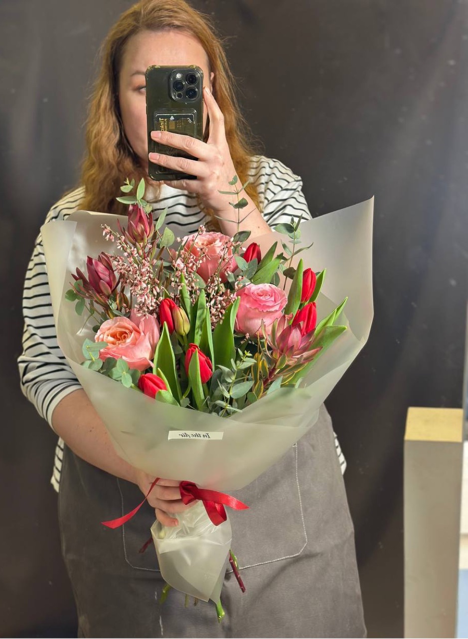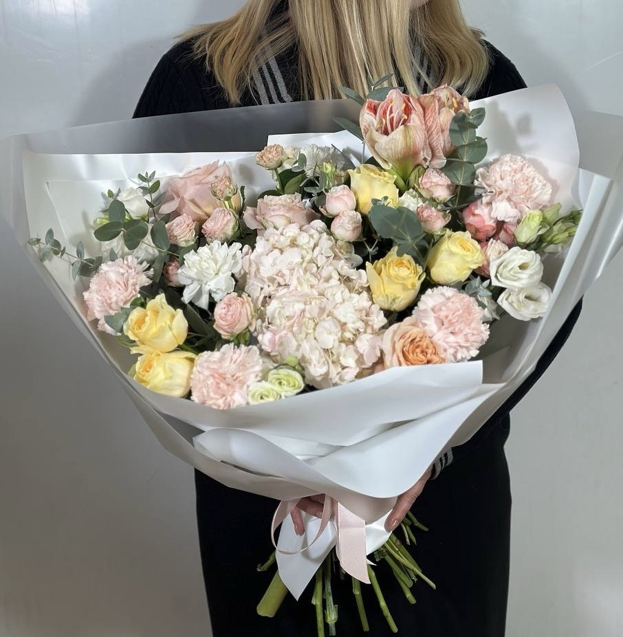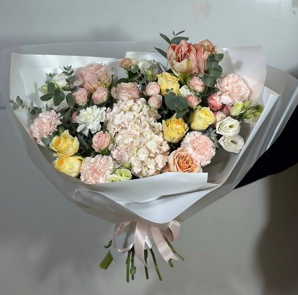 Свежесобранный букет в единственном экземпляре Собираем, фотографируем и сразу выкладываем на сайт. Можно заказать на сегодня завтра или послезавтра. Приедет тот самый букет с фото