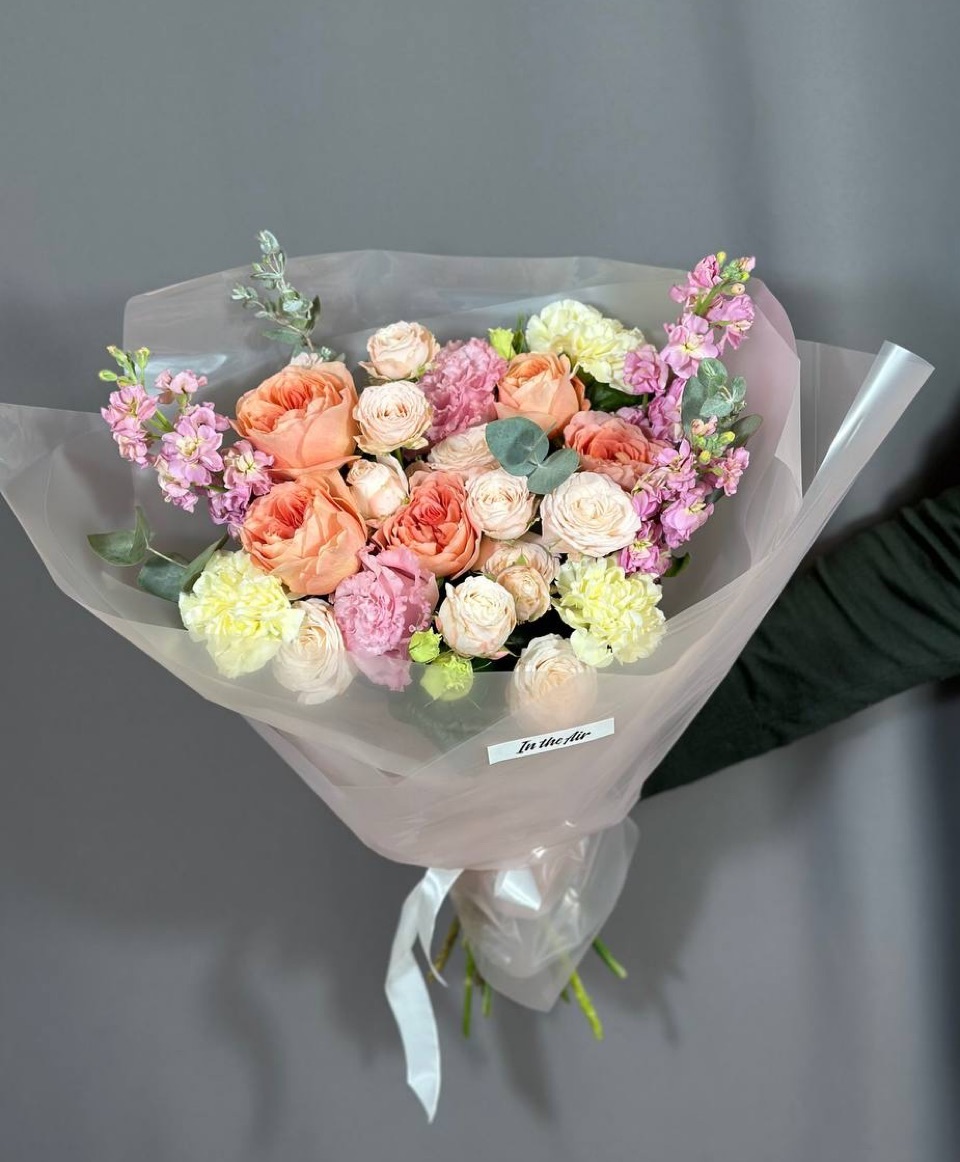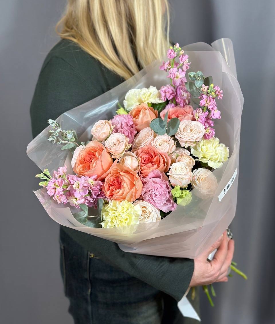 Свежесобранный букет в единственном экземпляре Собираем, фотографируем и сразу выкладываем на сайт. Можно заказать на сегодня завтра или послезавтра. Приедет тот самый букет с фото