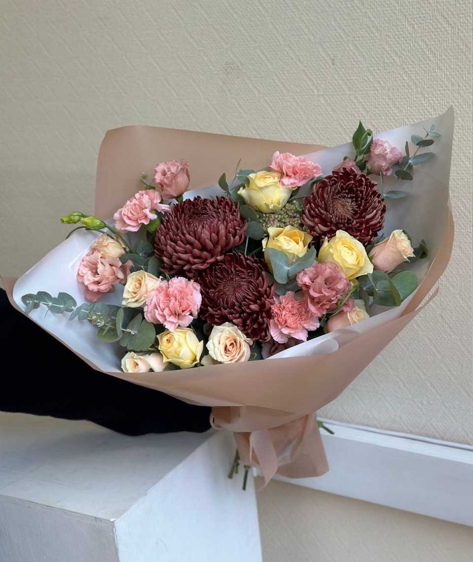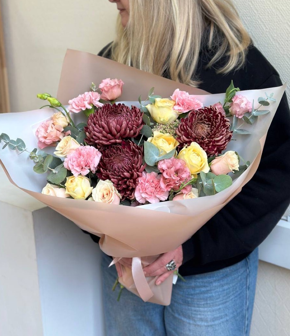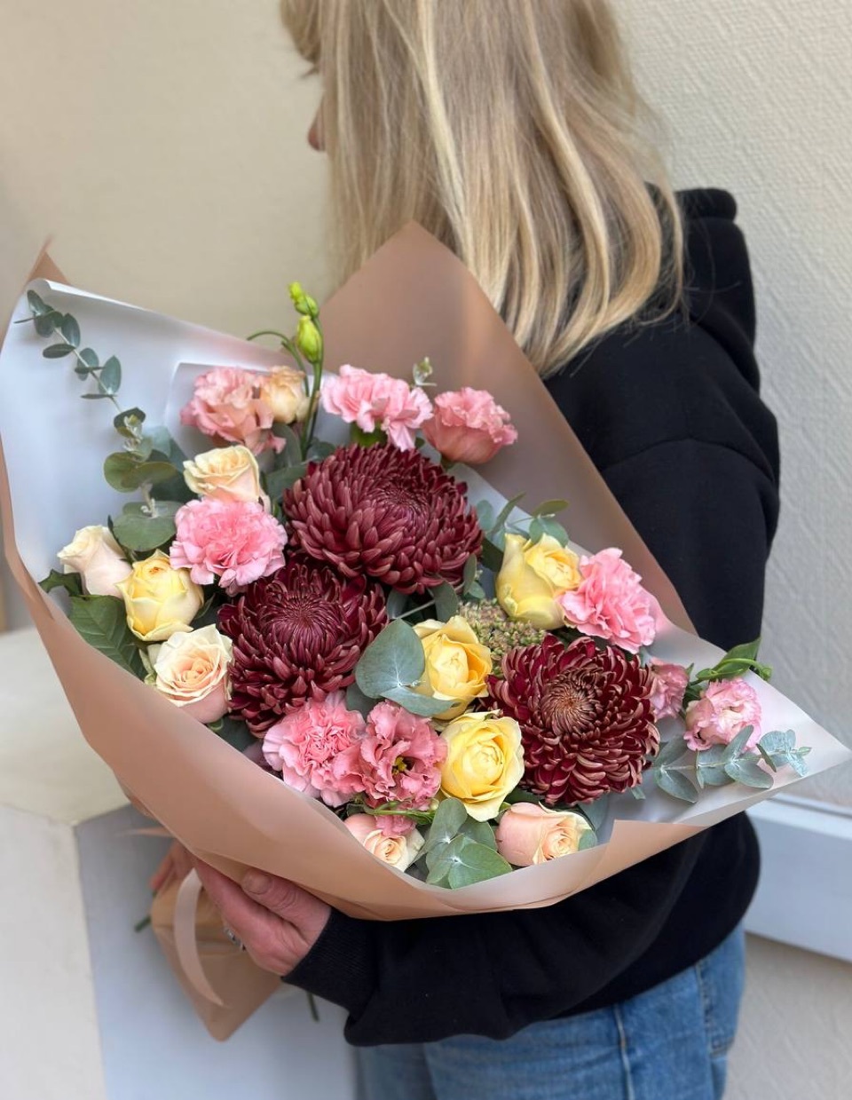 Свежесобранный букет в единственном экземпляре Собираем, фотографируем и сразу выкладываем на сайт. Можно заказать на сегодня завтра или послезавтра. Приедет тот самый букет с фото