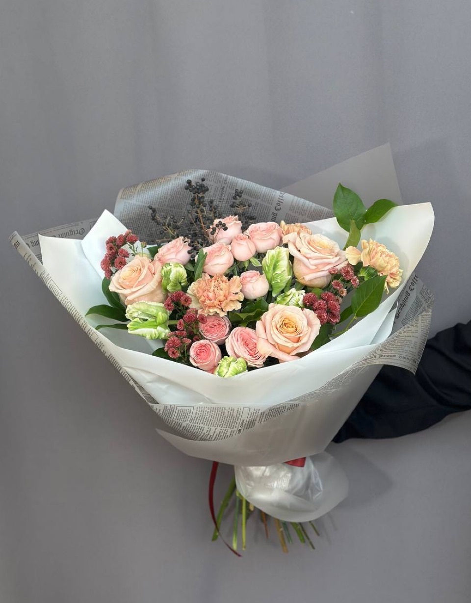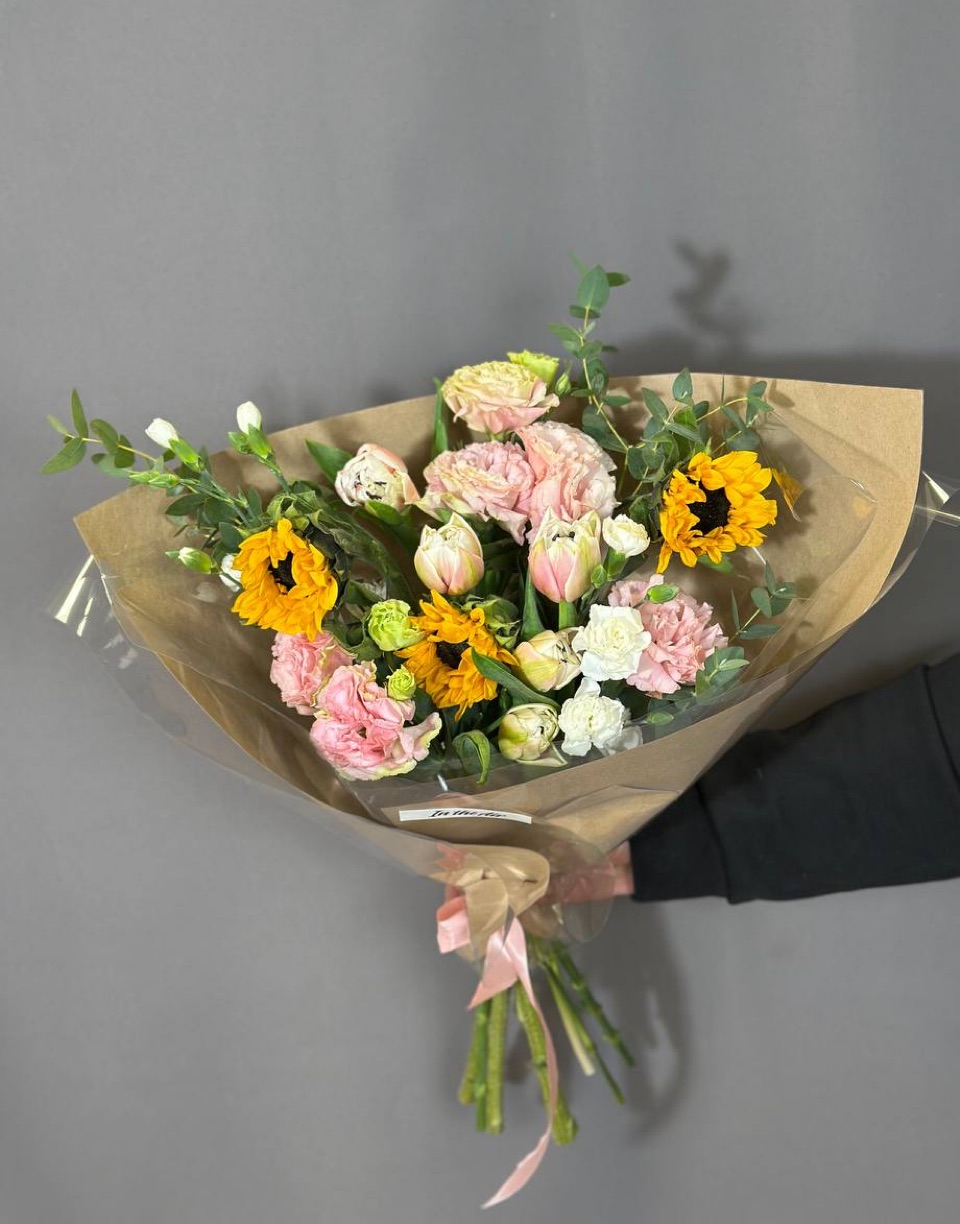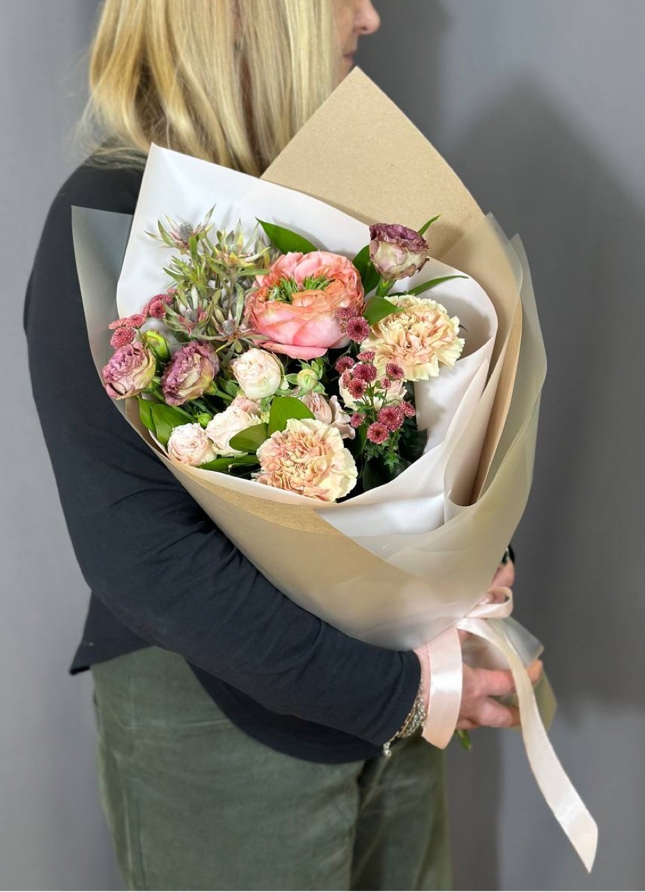 Свежесобранный букет в единственном экземпляре Собираем, фотографируем и сразу выкладываем на сайт. Можно заказать на сегодня завтра или послезавтра. Приедет тот самый букет с фото
