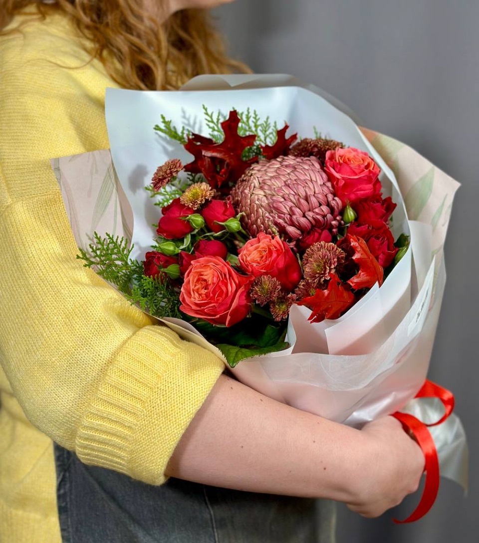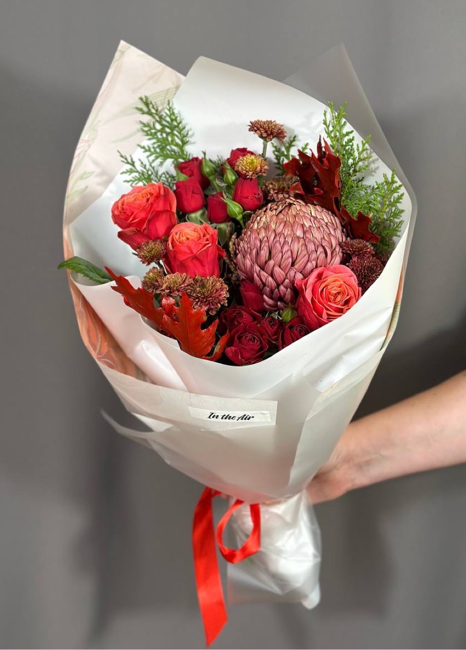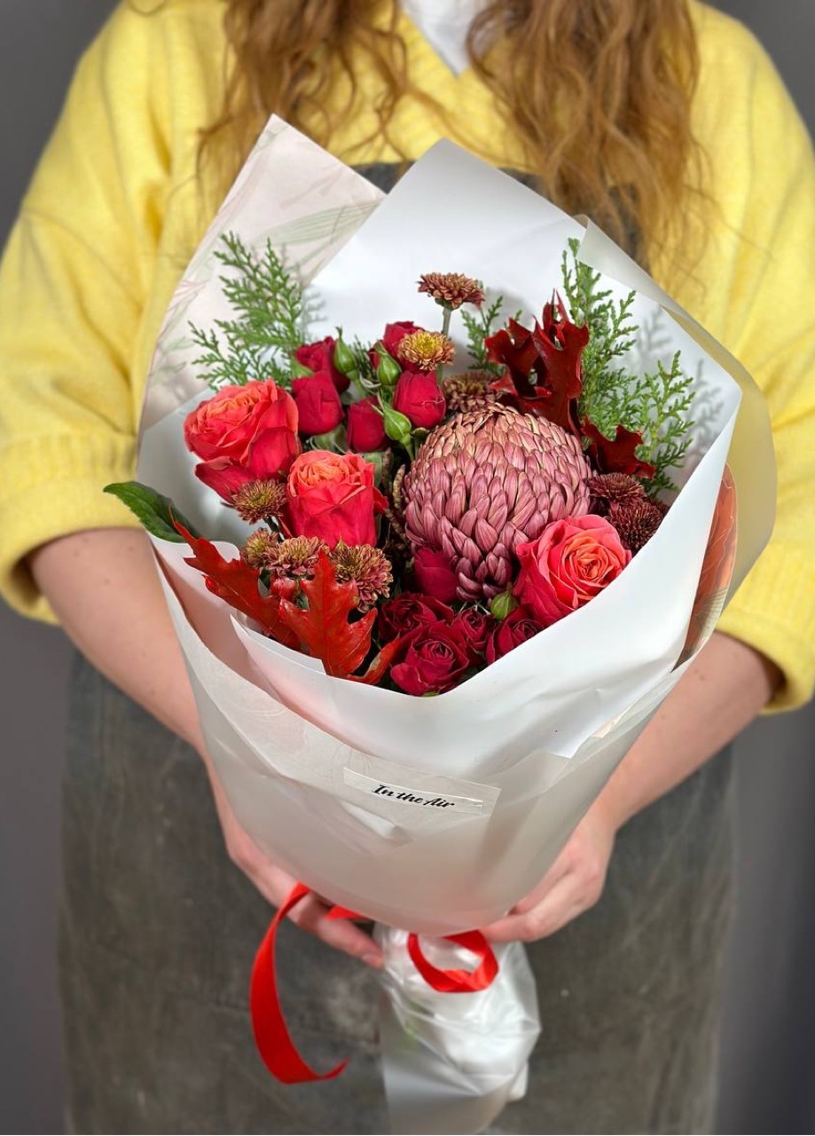 Свежесобранный букет в единственном экземпляре Собираем, фотографируем и сразу выкладываем на сайт. Можно заказать на сегодня завтра или послезавтра. Приедет тот самый букет с фото