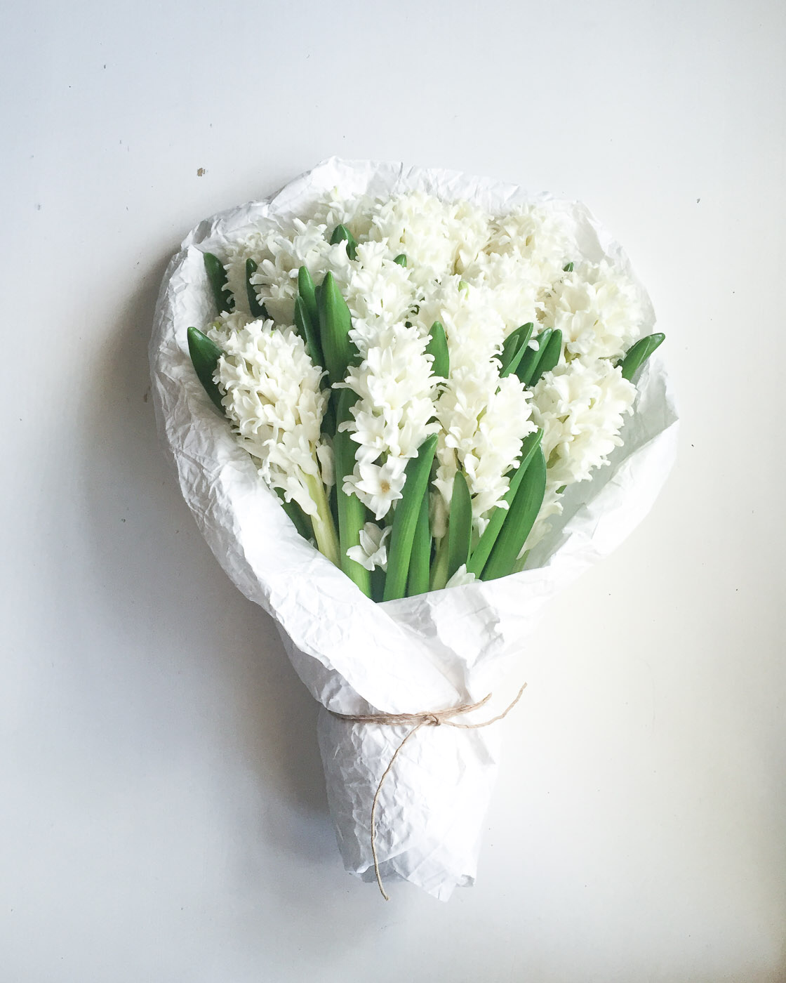 15 сахарных гиацинтов в белой мятой бумаге. Для тех, кто любит весну и сладенькое.
